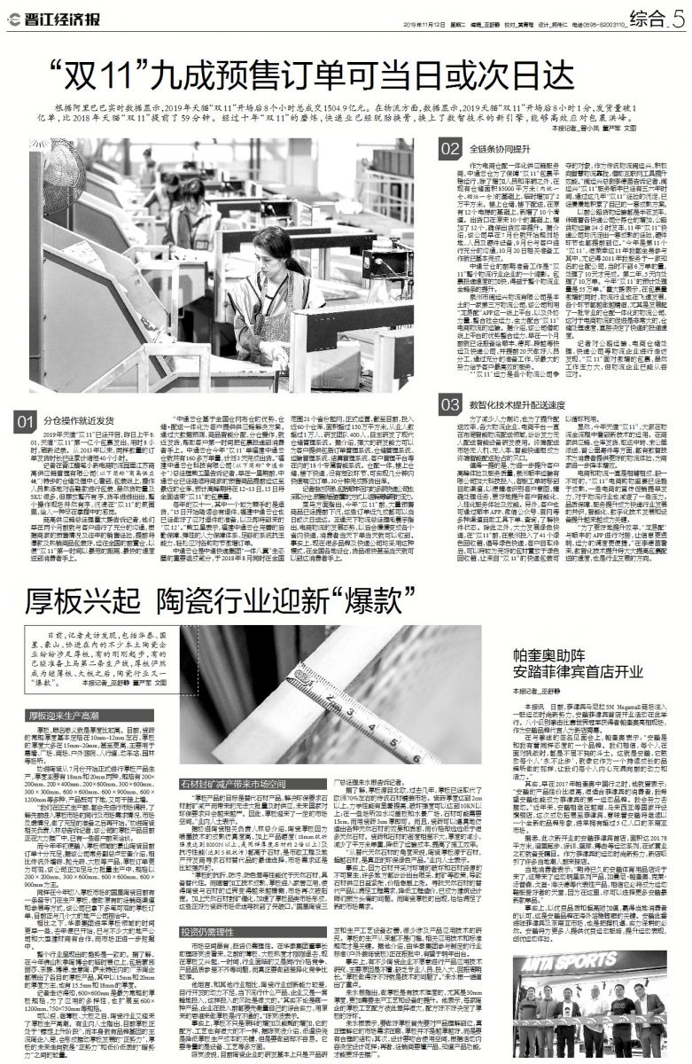 寫入黨章,未來國家對環保只會越來越嚴,礦山的亂開亂砍的時代基本不存在,所以目前陶瓷厚板由于噴墨技術的成熟仿真度高,加上產品硬度(18mm抗折強度達到8000N以上,是同樣厚度石材的2倍以上)及抗污性能(達到5級抗污)都高于石材,是市政工程及地產開發商需求替代的最佳產品,市場需求已經呈現井噴狀態,另外我們公司進入一個新品領域都會定位最好品質要求,所以我們的產品基本為原創設計,都是與石材從業者,地產采購,設計進行溝通了解,選擇使用量最大的產品進行原創設計生產,其實已經是接了接近不少訂單,目前來電,推薦及來廠了解的客戶及工程不少,都有陸陸續續進行洽談,其實同行中福建七彩,名奇都是最早進入厚板產品的,地產及出口都做的不錯,但都是以小規格為主